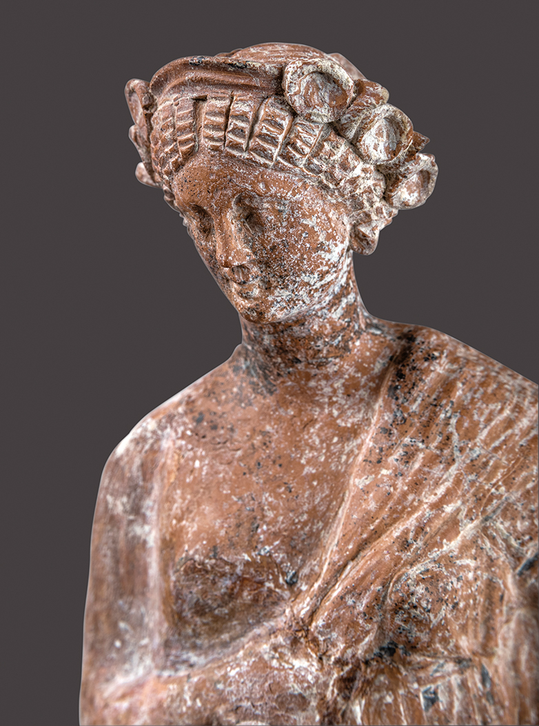 Ειδώλιο ιστάμενης γυναικείας μορφής με χιτώνα και αραχνοΰφαντο ιμάτιο, τέλος 4ου – αρχές 3ου αι.