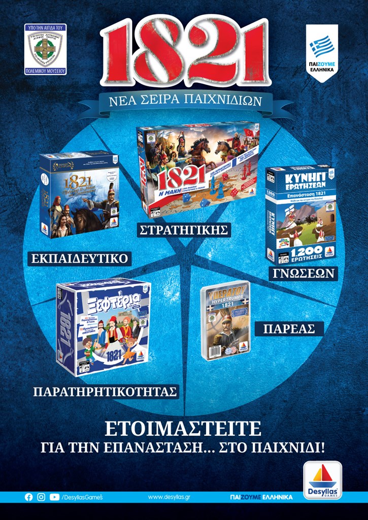 Η Ελληνική κατασκευαστική εταιρεία παιχνιδιών και βιβλίων Desyllas games σε συνεργασία με την Διεύθυνση ιστορίας του Πολεμικού Mουσείου και μετά από μία ενδελεχή έρευνα μηνών, δημιούργησε την επιτυχημένη σειρά «1821», η οποία περιλαμβάνει 5 τίτλους παιχνιδιών για μικρούς και μεγάλους. Η σειρά των επιτραπέζιων είναι προσαρμοσμένη στις σύγχρονες ανάγκες των παιδιών και της οικογένειας και κρατάει αμείωτο το ενδιαφέρον. Οι 5 τίτλοι της σειράς είναι :