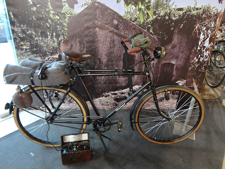 Το συγκεκριμένο ποδήλατο της συλλογής του μεταφέρθηκε μαζί με δεκάδες άλλα από τους Γερμανούς κατά την απόβαση στη Μάχη της Κρήτης. Ανήκε σε ασυρματιστή και φέρει κουβέρτα, τηλέφωνο, παγούρι, μπέρτα, βάση για το τουφέκι, και κάλυμμα για το φανάρι (συσκότιση). Μπροστινό φρένο και φρένο κόντρα πίσω.