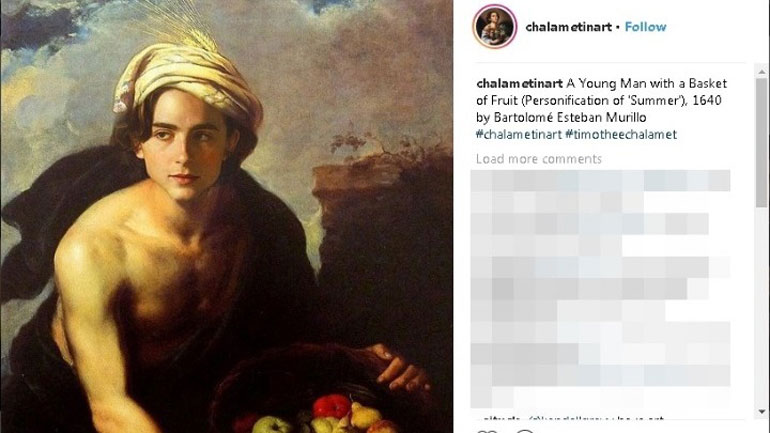 Αναρωτηθήκατε ποτέ σε ποιους πίνακες του Μικελάντζελο Μερίζι ντα Καραβάτζο ή του Τζον Σίνγκερ Σάρτζεντ θα μπορούσε να χρησιμοποιηθεί ως μοντέλο ο Τιμοτέ Σαλαμέ; Η απάντηση δόθηκε μέσω του λογαριασμού @CHALAMETINART, στο Instagram που πρόκειται να γίνει viral αυτόν τον μήνα, με το πρόσωπο του νεαρού ηθοποιού σε μερικά από τα πιο γνωστά έργα ζωγραφικής της ιστορίας της τέχνης.