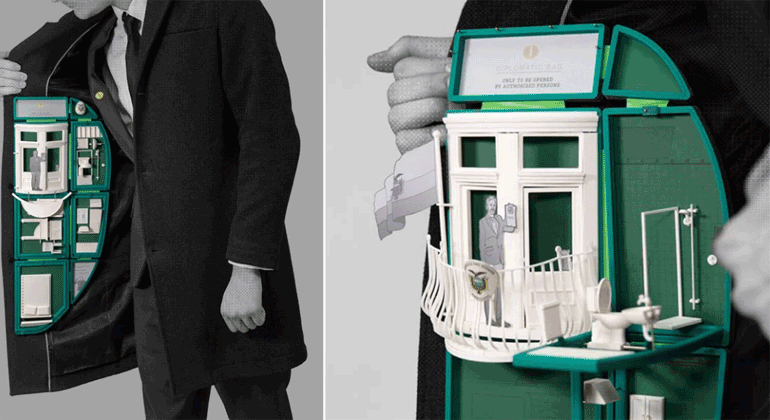 Χρησιμοποιώντας έναν συνδυασμό στοιχείων από χαρτόνι και στοιχείων που κατασκεύασε σε τρισδιάστατο εκτυπωτή, ο σχεδιαστής αρχιτεκτονικών σχεδίων Θίο Τζόουνς (Theo Jones) φιλοτέχνησε ένα «σακάκι διπλωμάτη» για να απεικονίσει την εμπειρία του Τζούλιαν Ασάνζ στην Πρεσβεία του Εκουαδόρ στο Λονδίνο. Στο πρότζεκτ χαρτογραφούνται τα δωμάτια στο κτήριο στο Knightsbridge όπου ο δημοσιογράφος παρέμεινε έγκλειστος επί περισσότερα από έξι χρόνια.