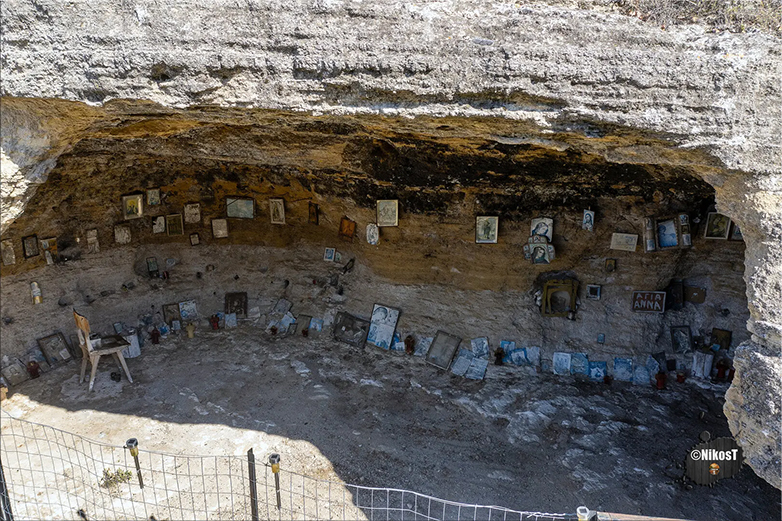 Θα προσθέσουμε και έναν μύθο που ακούσαμε από ντόπιους. Ο μύθος λέει ότι ένα τουρκάκι μια μέρα που έπιασε δυνατή βροχή και αυτό έβοσκε τα πρόβατα, πήγε να προφυλαχτεί μέσα στην σπηλιά που ήταν εκκλησιά και η εκκλησιά ήρθε ανάποδα. Λένε ότι αυτά που φαίνονται πέτρες στο δάπεδο, είναι η σκεπή.
