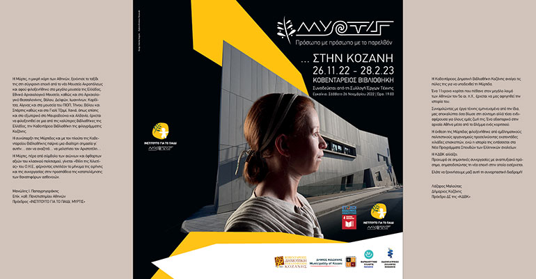 Στον μαγικό κόσμο των βιβλίων της «Κοβενταρείου Δημοτικής Βιβλιοθήκης Κοζάνης» βρίσκεται αυτή την περίοδο η Μύρτιδα. Έπειτα από πρόσκληση του Φιλοπρόοδου Συλλόγου Κοζάνης, η μικρή Αθηναία που έζησε τον 5ο αι. π. Χ. και το πρόσωπό της αναπλάστηκε από την επιστημονική ομάδα του επίκουρου καθηγητή Ορθοδοντικής του ΕΚΠΑ Μανώλη Παπαγρηγοράκη, «ταξίδεψε» έως την Κοζάνη και την ξεχωριστή βιβλιοθήκη της. Εκεί θα παραμείνει έως τις 28 Φεβρουαρίου 2023, παρουσιάζοντας την περιοδεύουσα έκθεσή της «Πρόσωπο με πρόσωπο με το παρελθόν», πρώτη φορά μαζί με την ανανεωμένη με νέα έργα Ελλήνων και ξένων καλλιτεχνών Πινακοθήκη – Γλυπτοθήκη της.
