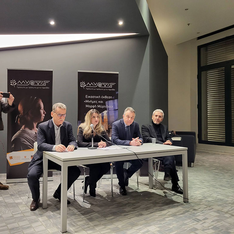 «Η νέα αυτή εικαστική έκθεση με θέμα “Μνήμες και μορφή Μύρτιδος” έχει σκοπό να ενεργοποιήσει έναν διάλογο ανάμεσα στην τέχνη και την ιστορική μνήμη», επισημαίνει στο ΑΠΕ-ΜΠΕ ο Μ. Παπαγρηγοράκης.