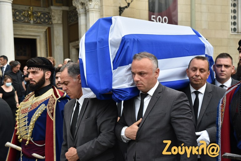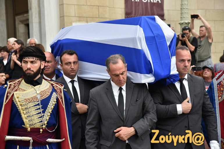 Το φέρετρο βγήκε από τη Μητρόπολη σκεπασμένο με την ελληνική σημαία και το κρατούσαν οι Κουρήτες ντυμένοι με τοπική φορεσιά.