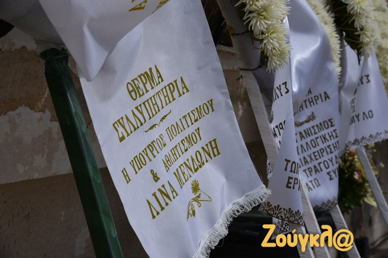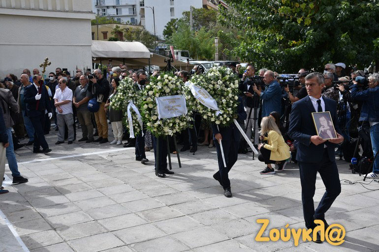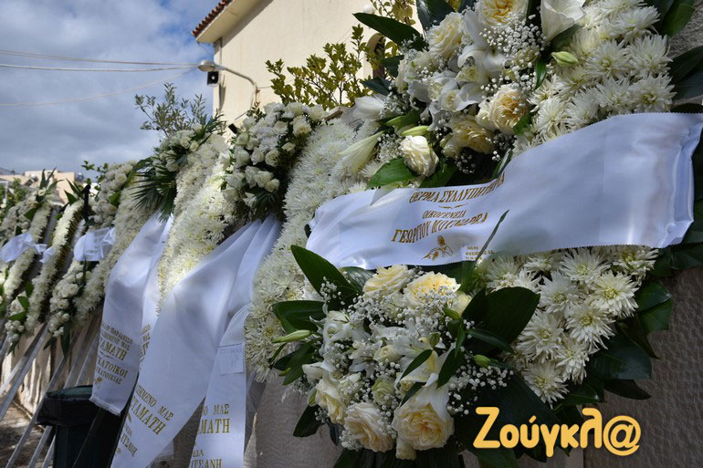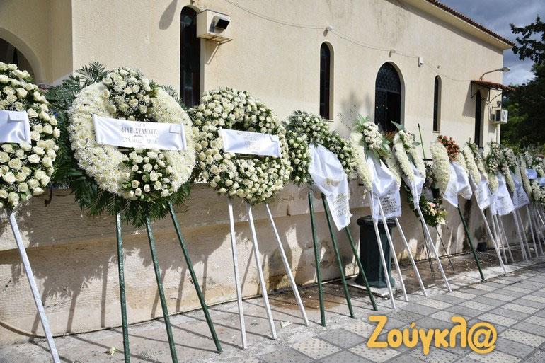 Στεφάνια από το πρωί κατέκλυσαν τον ναό, ενώ φίλοι του εκλιπόντος από τον καλλιτεχνικό χώρο και όχι μόνο έσπευσαν από νωρίς στην εκκλησία του Αγίου Κωνσταντίνου & Ελένης του Δημοτικού Κοιμητηρίου Ζωγράφου.