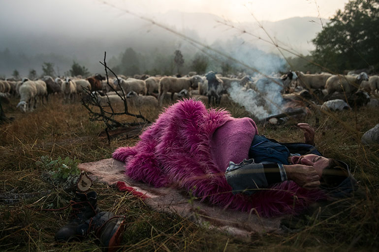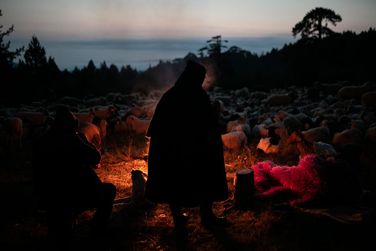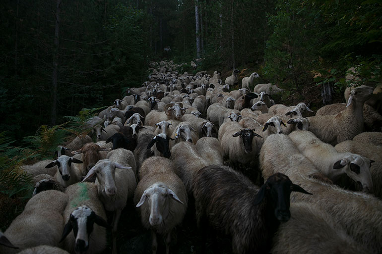 Ένα ζευγάρι κτηνοτρόφων σε ένα καλύβι στους πρόποδες του Σμόλικα αποτέλεσε τη «σπίθα» που άναψε τη φλόγα στην ψυχή του Θεσσαλονικιού φωτορεπόρτερ του ΑΠΕ-ΜΠΕ ώστε να πατήσει στα χνάρια των κτηνοτρόφων, οι οποίοι σε πείσμα της… σύγχρονης πρακτικής που θέλει τα ζώα να φορτώνονται σε φορτηγά για να μετακινηθούν από τόπο σε τόπο, επιλέγουν να τα οδηγούν με τα πόδια από τα βουνά στα χειμαδιά ώστε να ξεχειμωνιάσουν. Περπάτησε μαζί τους στο ορεινό ανάγλυφο της χώρας -εκεί που και ο ίδιος νιώθει ότι βρίσκεται στο φυσικό του περιβάλλον- κοιμήθηκε στην ύπαιθρο, πλάι στους ίδιους και στα ζώα τους, και αποτύπωσε μοναδικές στιγμές μιας διαδρομής δύσκολης αλλά και συνάμα συναρπαστικής.
