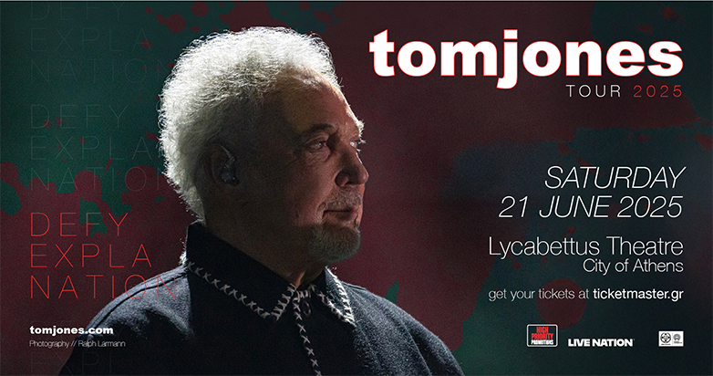 Ο θρυλικός Ουαλός τραγουδιστής, Sir Tom Jones, έρχεται για πρώτη φορά στην Αθήνα για μια ανεπανάληπτη συναυλία, το Σάββατο 21 Ιουνίου, στο ανανεωμένο Δημοτικό Θέατρο Λυκαβηττού. Μια ξεχωριστή βραδιά γεμάτη διαχρονικές επιτυχίες και αξεπέραστη σκηνική παρουσία!