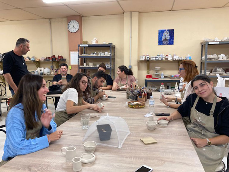 Στα μαθήματα κεραμικής του εργαστηρίου της οικογένειας συμμετέχουν άνθρωποι κάθε ηλικίας -«είναι σαν ψυχοθεραπεία», τονίζουν- ενώ το τελευταίο διάστημα μαθήματα παρακολουθούν και ομάδες από πολυεθνική εταιρεία που προσφέρει στους υπαλλήλους της αυτή τη δυνατότητα, αφενός για να ξεδιπλώσουν τη δημιουργικότητά τους, αφετέρου για να ενδυναμώσουν τις μεταξύ τους σχέσεις.