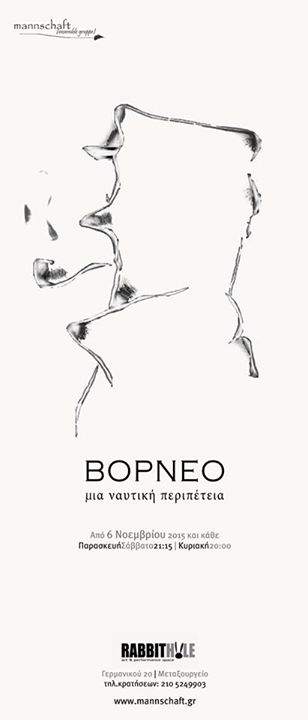 Η θεατρική ομάδα Mannschaft [ensemble gruppe] παρουσιάζει από την Παρασκευή 6 Νοεμβρίου την παράσταση «Βόρνεο», σε σκηνοθεσία του Γιώργου Σίμωνα: μια ναυτική περιπέτεια που αφηγείται την ιστορία μιας ομάδας ανθρώπων που καλείται να ανταπεξέλθει σε αντίξοες συνθήκες.