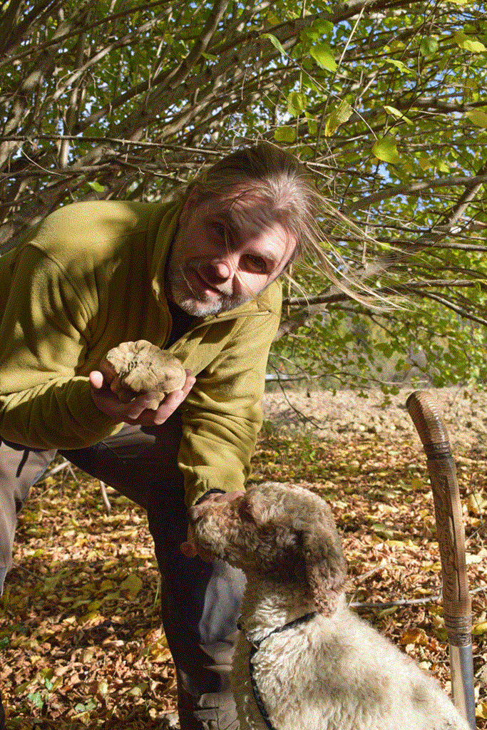 Τη λευκή αυτή τρούφα, βρήκε ο συνεργάτης του Μουσείου Φυσικής Ιστορίας Μετεώρων και Μουσείου Μανιταριών κ. Χρήστος Πλεσιώτης, ο οποίος είναι τρουφοσυλλέκτης, σεφ και ιδιοκτήτης εκτροφείου των εξαιρετικών σκυλιών για κυνήγι τρούφας Lagotto Romagnolo, με την ονομασία Il monte del bianco. Την ανακάλυψε στα ελληνικά βουνά το τρουφόσκυλό του, ο Brio, και αποτελεί μία τεράστια επιτυχία, αν αναλογιστούμε ότι οι λευκές τρούφες ζυγίζουν συνήθως 50-150 γραμμάρια.
