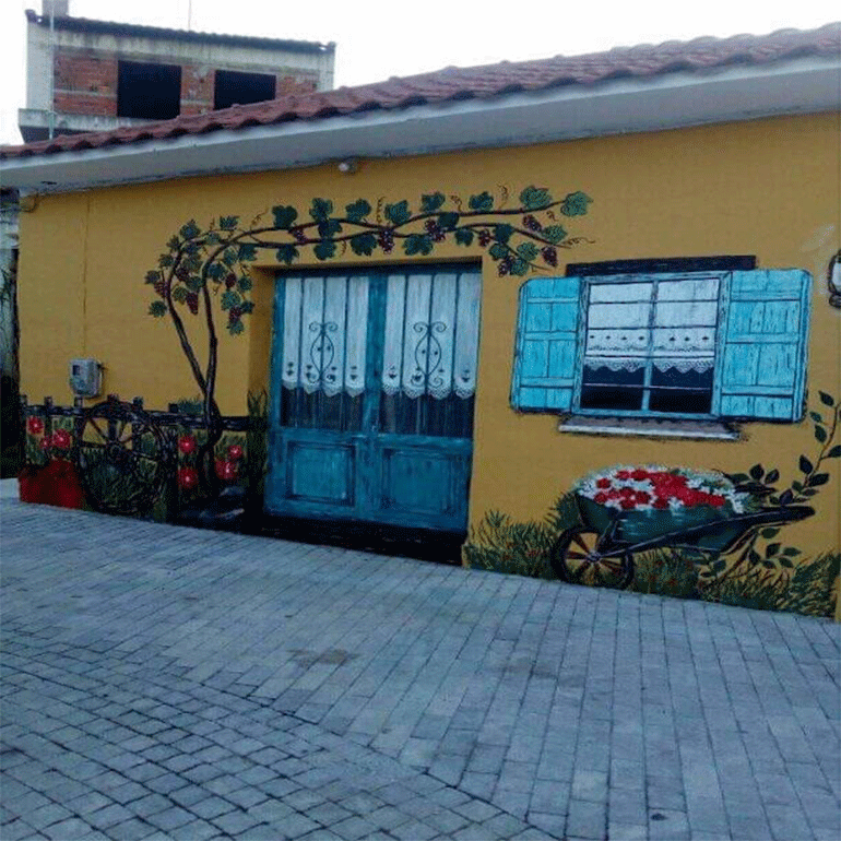 Αντίθεση στη μουντάδα του lockdown αποτελούν οι ζωγραφισμένοι τοίχοι παλιών κτηρίων της Παλαιόχωρας Χαλκιδικής χάρη στις εικαστικές παρεμβάσεις επτά γυναικών -μελών του Συλλόγου Τεχνών Γαλάτιστας.