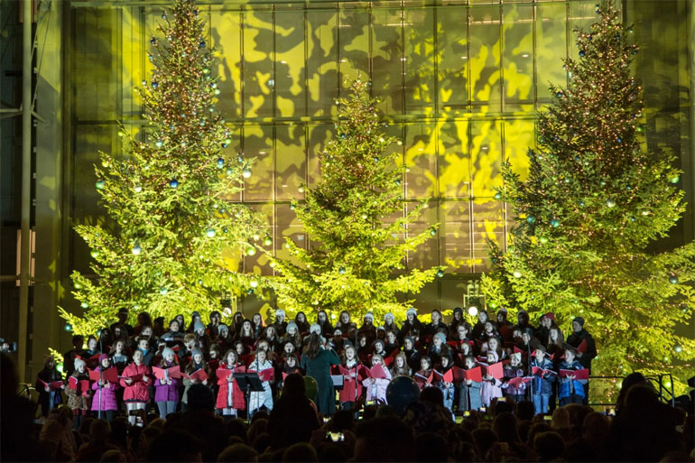 Τα χιλιάδες χριστουγεννιάτικα φωτάκια στα πλατάνια κατά μήκος του Καναλιού ανάβουν, τα πανύψηλα στολισμένα έλατα της Αγοράς αποκαλύπτονται σε όλη τους τη λάμψη, οι φωτεινές εγκαταστάσεις στο Πάρκο Σταύρος Νιάρχος στήνουν ευρηματικά παιχνίδια φωτός με τους περαστικούς. Το Παγοδρόμιο παίρνει ξανά ζωή, καθώς οι πρώτοι επισκέπτες γλιστρούν στον φρέσκο πάγο υπό τους ήχους της Παιδικής Χορωδίας της Εθνικής Λυρικής Σκηνής. Οι χριστουγεννιάτικες μελωδίες παρασύρουν και τα Σιντριβάνια του Καναλιού, που συμμετέχουν στον χορό με τον δικό τους θεαματικό τρόπο.