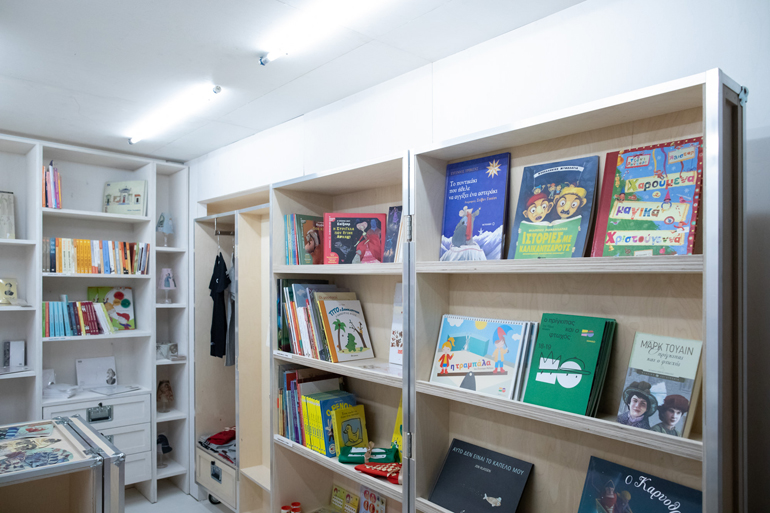 Κάποιες από τις προθήκες του πωλητηρίου είναι σταθερές, ενώ άλλες έχουν σχεδιαστεί ως αυτόνομα μικρά flight cases με ρόδες, τα οποία κλείνουν και ασφαλίζουν για να ταξιδεύουν μαζί με τις θεατρικές παραγωγές του Εθνικού Θεάτρου. Έτσι, ένα μικρό αναδυόμενο πωλητήριο μπορεί να στηθεί παντού, όπως έγινε φέτος το καλοκαίρι στην Επίδαυρο.