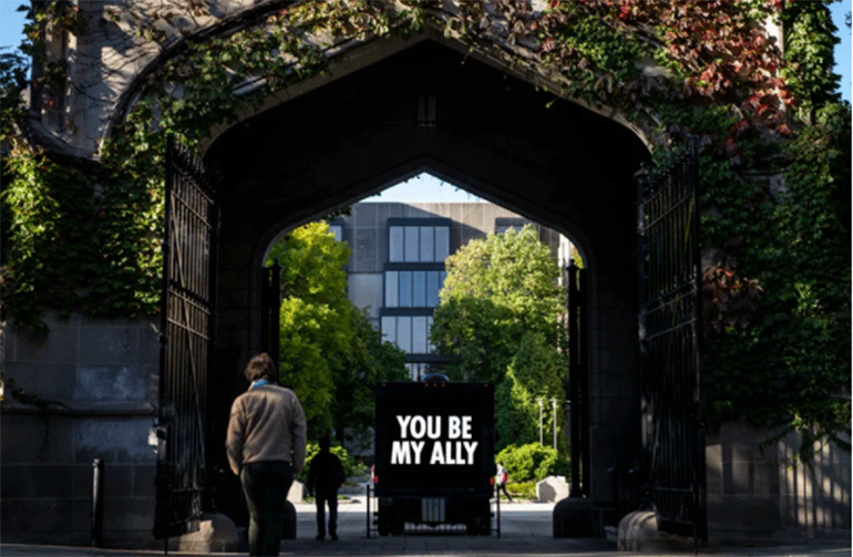 Καινούργιο δημόσιο έργο τέχνης από την παγκοσμίου φήμης καλλιτέχνιδα Jenny Holzer εγκαινίασε προσφάτως το Πανεπιστήμιο του Σικάγου. Με τίτλο «You Be My Ally» και βασισμένο σε κείμενο, το έργο δημιουργήθηκε σε συνεργασία με τους φοιτητές και καθηγητές του πανεπιστημίου.