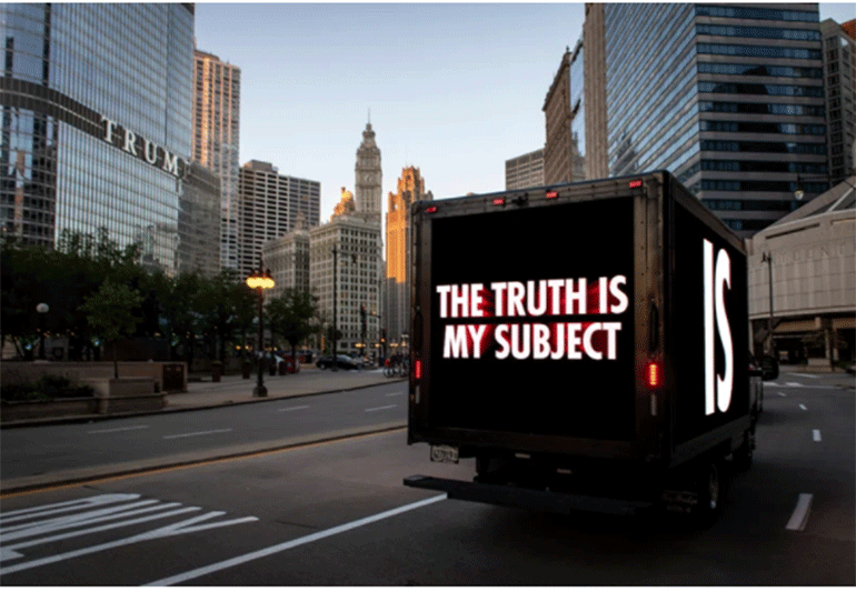 Έως τις 22 Νοεμβρίου, μέσω μια εφαρμογής διευρυμένης πραγματικότητας και ενός στόλου φορτηγών με LED τα οποία διατρέχουν την Πόλη των Ανέμων, η καλλιτέχνις απαντά στην πρόκληση της συμμετοχής στις τέχνες εν μέσω πανδημίας. Τα κείμενα τα οποία έχουν επιλεγεί καλούν, τις μέρες και εβδομάδες που οδηγούν στις προεδρικές του 2020 στις ΗΠΑ, τους θεατές να αναλογιστούν τον αντίκτυπο του δημόσιου λόγου σε μια δημοκρατία.