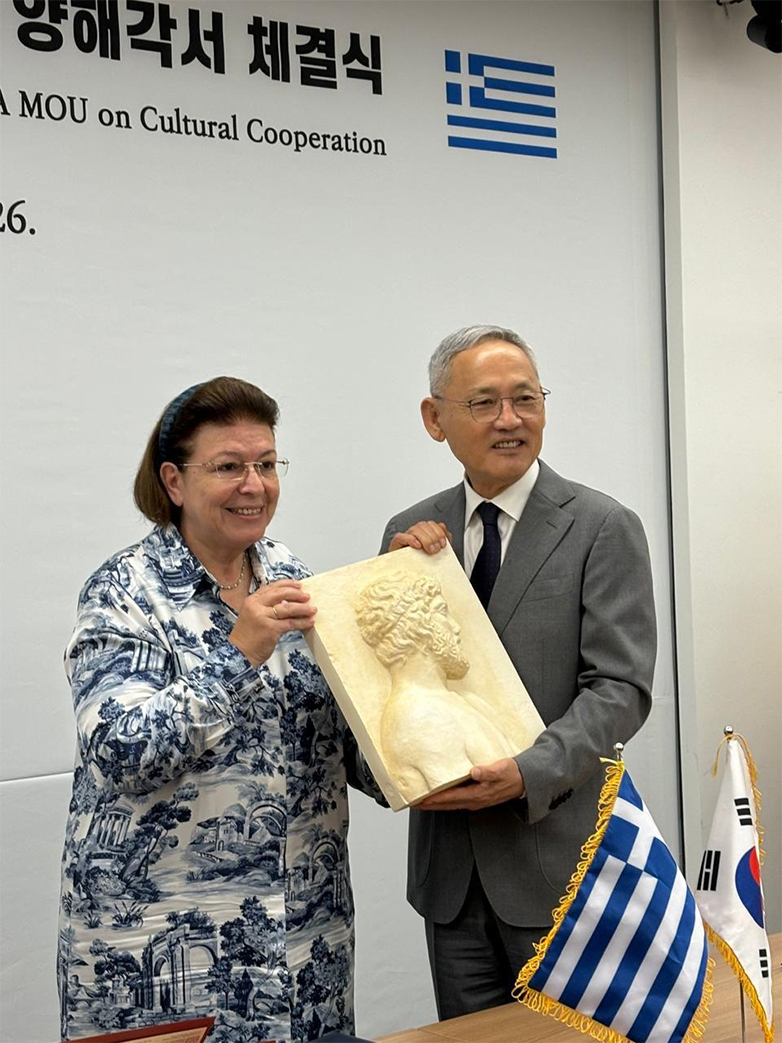 Η υπουργός Πολιτισμού Λίνα Μενδώνη υπέγραψε Μνημόνιο Κατανόησης Πολιτιστικής Συνεργασίας με τον υπουργό Πολιτισμού, Αθλητισμού και Τουρισμού της Δημοκρατίας της Κορέας Yu In-Chon. Όπως ενημερώνει ανακοίνωση του ΥΠΠΟ, κατά τη συνάντηση εργασίας, οι δύο υπουργοί τόνισαν τις άριστες πολιτικές και διπλωματικές σχέσεις που υφίστανται μεταξύ Ελλάδας και Κορέας, οι οποίες σφυρηλατήθηκαν στη δύσκολη περίοδο του κορεατικού πολέμου, ενώ επισήμαναν την ανάγκη ενίσχυσης της πολιτιστικής συνεργασίας μέσω της άμεσης εφαρμογής του Μνημονίου Κατανόησης που υπέγραψαν και το οποίο αντανακλά τις νέες κατευθύνσεις συνεργασίας των δύο χωρών στους τομείς της πολιτιστικής κληρονομιάς και της σύγχρονης δημιουργίας που επιθυμούν οι δύο χώρες.
