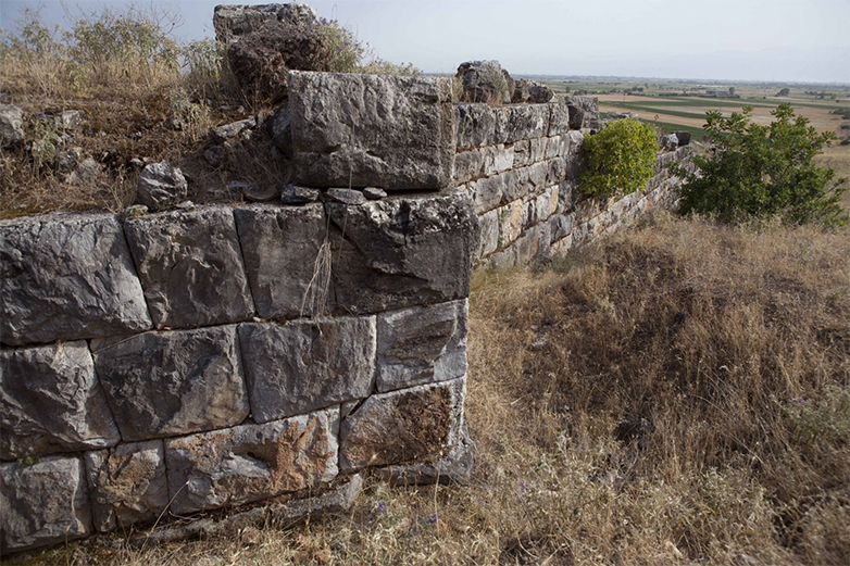 Άποψη του τείχους στην Ακρόπολη της Αρχαίας Πέλιννας