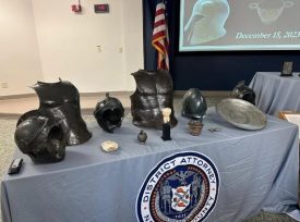 Συνολικά 30 αρχαιότητες επιστρέφουν στην Ελλάδα μετά την κατάσχεσή τους από την Εισαγγελία του Μανχάταν. Όπως ενημερώνει ανακοίνωση του ΥΠΠΟ, οι αρχαιότητες παραδόθηκαν στις ελληνικές Αρχές την Παρασκευή 15 Δεκεμβρίου από τον επικεφαλής της Antiquities Trafficking Unit Matthew Bogdanos, Αντιεισαγγελέα στην Εισαγγελία του Μανχάταν, σε ειδική τελετή που πραγματοποιήθηκε στα γραφεία της Εισαγγελίας, παρουσία του Γενικού Γραμματέα Πολιτισμού Γεωργίου Διδασκάλου, του Γενικού Προξένου της Ελλάδας στη Νέα Υόρκη Κωνσταντίνου Κωνσταντίνου και στελεχών της Διεύθυνσης Τεκμηρίωσης και Προστασίας Πολιτιστικών Αγαθών.