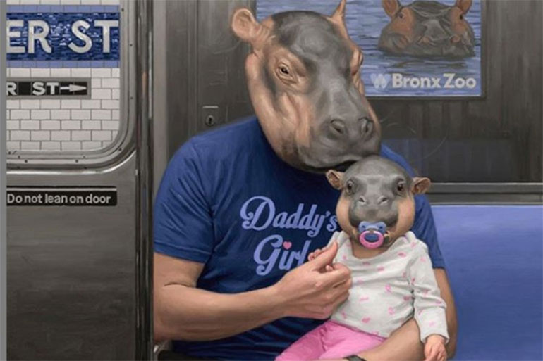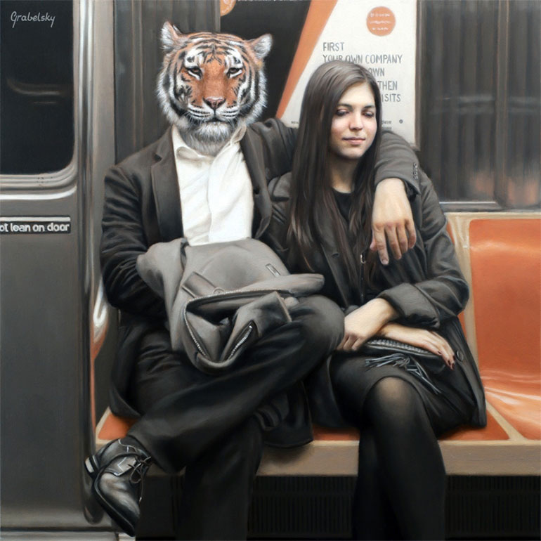 Ζωόμορφοι Νεοϋορκέζοι ταξιδεύουν με το μετρό του μεγάλου Μήλου στη νέα έκθεση ελαιογραφιών του Μάθιου Γκραμπέλσκι.