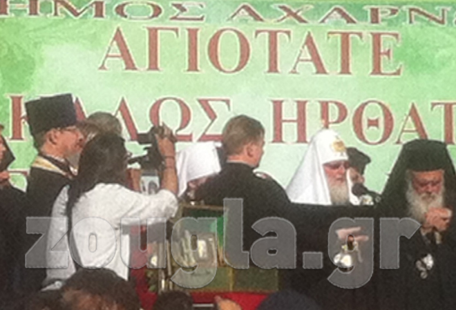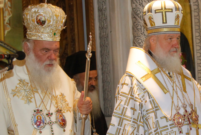 Στους μακραίωνους δεσμούς των δύο Εκκλησιών αναφέρθηκε ο αρχιεπίσκοπος Αθηνών και Πάσης Ελλάδος Ιερώνυμος από άμβωνος, κατά το συλλείτουργο με τον πατριάρχη Μόσχας και Πασών των Ρωσιών Κύριλλο στον ναό του Αγίου Παντελεήμονα Αχαρνών.