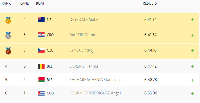 Ο Μάχε Ντρισντέιλ από τη Νέα Ζηλανδία και ο Νταμίρ Μάρτιν από την Κροατία τερμάτησαν σχεδόν ταυτόχρονο στο μονό σκιφ των ανδρών στο Ρίο. Ο Νεοζηλανδός μαζί με τον Κροάτη τερμάτισαν με 6:41.34, όμως ο Ντρισντέιλ κέρδισε το χρυσό!