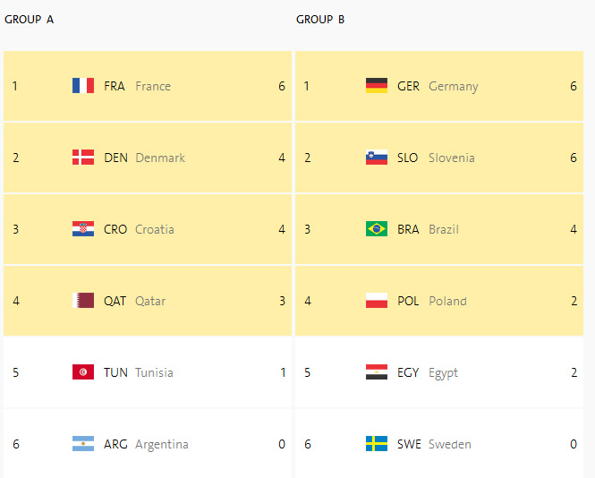 Οι βαθμολογίες στους δύο ομίλους: