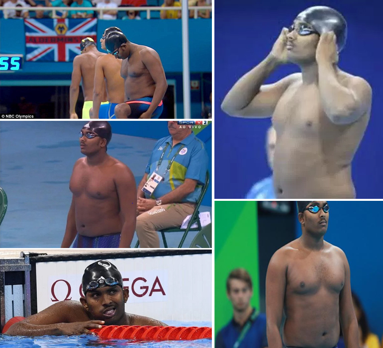 Το… σωσίβιο στην κοιλιά δεν κρυβόταν, με τον ίδιο να απολαμβάνει την κάθε στιγμή και να πέφτει ακομπλεξάριστος στην πισίνα. Ο 24χρονος κολυμβητής σημείωσε τη χειρότερη επίδοση και από τους 59 αθλητές που έλαβαν μέρος στα προκριματικά, κέρδισε όμως το πιο ζεστό χειροκρότημα του κοινού. Είναι ξεκάθαρο πως οι θεατές εκτίμησαν το γεγονός ότι ο συγκεκριμένος αθλητής έσπασε την παράδοση που θέλει οι κολυμβητές να χαρακτηρίζονται μεταξύ άλλων από τα καλογυμνασμένα κορμιά με σήμα κατατεθέν το… six pack. Στην περίπτωση το… one pack ήταν αρκετό.