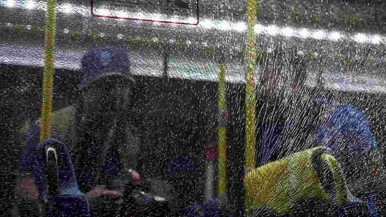 Το λεωφορείο πραγματοποιούσε τη διαδρομή από το κλειστό γήπεδο του μπάσκετ προς το βασικό κέντρο Τύπου, όταν δέχθηκε δύο σφαίρες, με συνέπεια να σπάσουν τζάμια.