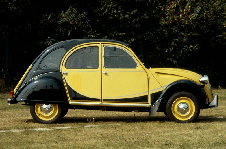 Όταν βγήκε στην παραγωγή τον Ιούλιο του 1949, το 2 CV ήταν ένα μικρό αυτοκίνητο με αερόψυκτο, επίπεδο δίδυμο κινητήρα 9 ίππων, 375 cc, με τελική ταχύτητα 50 km/h. Με αυτό το μοντέλο, η Citroën είχε φέρει επανάσταση στην αυτοκινητοβιομηχανία, με ένα οικονομικό και ευέλικτο όχημα.