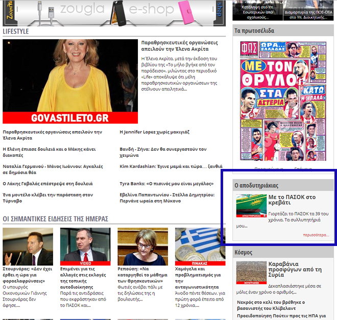 To πρώτο άρθρο του αποδυτηριάκια στο zougla.gr