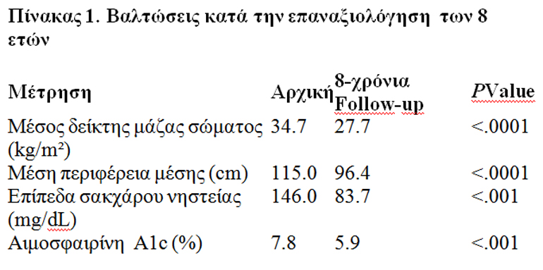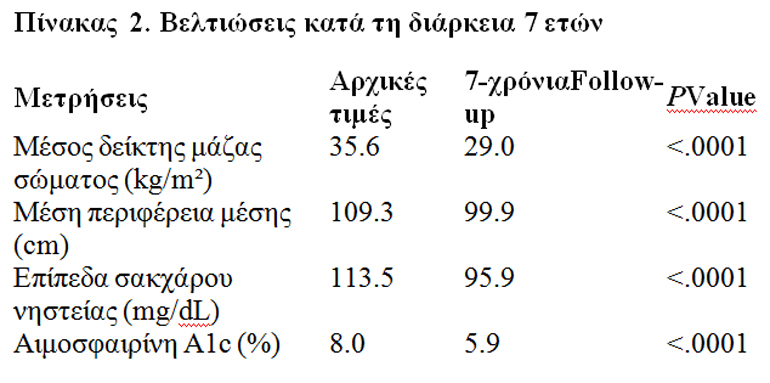 Κατά την έναρξη της μελέτης, μόνο το 11% των ανδρών είχαν επίπεδα αιμοσφαιρίνης A1 clevels να κυμαίνονται στο 7%, ενώ μετά από τα 7 χρόνια εκεί κυμαίνονταν οι τιμές όλων των ανδρών after 7 years, allthemendid.