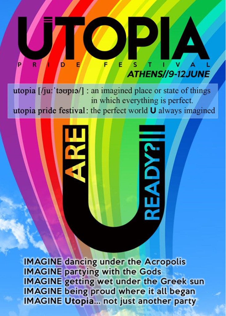 Το UTOPIA PRIDE FESTIVAL, το πρώτο διεθνές φεστιβάλ το οποίο θα λάβει χώρα στην Αθήνα τις ημέρες του Athens Pride (9- 12 Ιουνίου) υπόσχεται στο κοινό το οποίο θα το επισκεφτεί ένα τριήμερο πάρτι. Το UTOPIA μεταφέρει τους εορτασμούς σε διαφορετικούς χώρους, παρουσιάζοντας μας κάθε φορά και κάτι διαφορετικό.