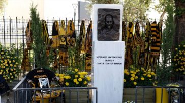 Από το πρωί εκατοντάδες φίλοι της ΑΕΚ βρέθηκαν στο σημείο για να τιμήσουν τον δικό τους Μιχάλη.