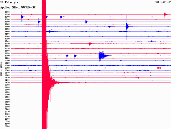 Δείτε πώς κατέγραψε τη δόνηση ο σεισμογράφος του Γεωδυναμικού Ινστιτούτου του Εθνικού Αστεροσκοπείου Αθηνών που είναι εγκατεστημμένος στα Καλάβρυτα.