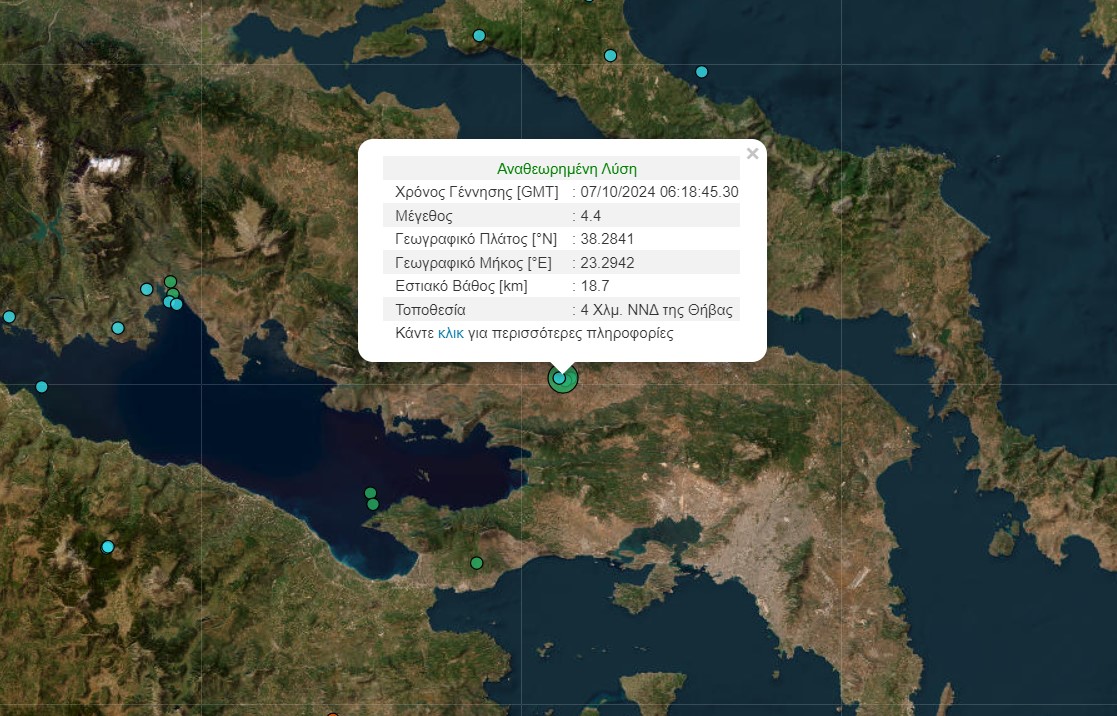 Σεισμός 4,4 ρίχτερ σημειώθηκε το πρωί της Δευτέρας (07/10) και έγινε αισθητός στην Αθήνα.