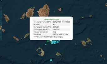 Σεισμός 3,4 Ρίχτερ, έγινε στις 22:52 της Τετάρτης (19/02), με επίκεντρο 26 Χλμ. ΑΒΑ της Οίας και εστιακό βάθος 11,4 χιλιόμετρα.