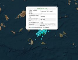 Νέος σεισμός μεγέθους 4,4 Ρίχτερ καταγράφηκε στις 11:03 πμ. 15 χιλιόμετρα νότια της Αρκεσίνης Αμοργού με εστιακό βάθος στα 12 χιλιόμετρα.