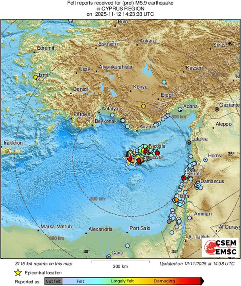 Ο καθηγητής επισήμανε ότι τέτοιοι σεισμοί δεν είναι πολύ συχνοί στην Κύπρο: