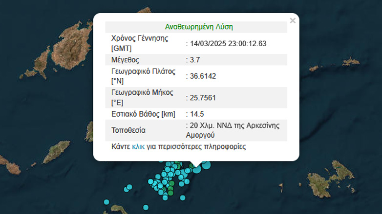 Σεισμός 3,7 Ρίχτερ νοτιοδυτικά της Αρκεσίνης Αμοργού