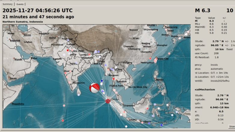 Strong M6.6 #earthquake offshore Northern #Sumatra, #Indonesia on 27 Nov 2025 at 04:56 UTC recorded by Stations R0ED0 and RD96A in #Uttaradit, #Thailand and #Astana, #Kazakhstan @raspishakEQ @raspishakehttps://t.co/BQWN14L3He pic.twitter.com/4RJtH6PeET