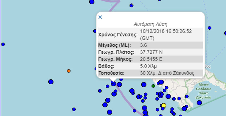Το επίκεντρο του σεισμού εντοπίζεται 30 χιλιόμετρα δυτικά της Ζακύνθου και το εστιακό του βάθος υπολογίστηκε στα 5 χλμ.