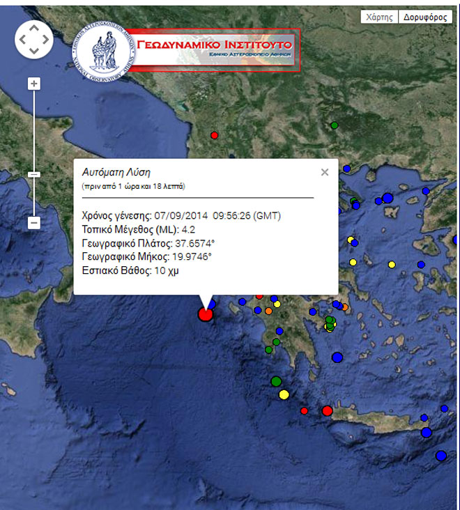 Σεισμική δόνηση μεγέθους 4,2 βαθμών της κλίμακας Ρίχτερ σημειώθηκε το μεσημέρι της Κυριακής (12.56) στη θαλάσσια περιοχή ανοιχτά της Κεφαλονιάς.