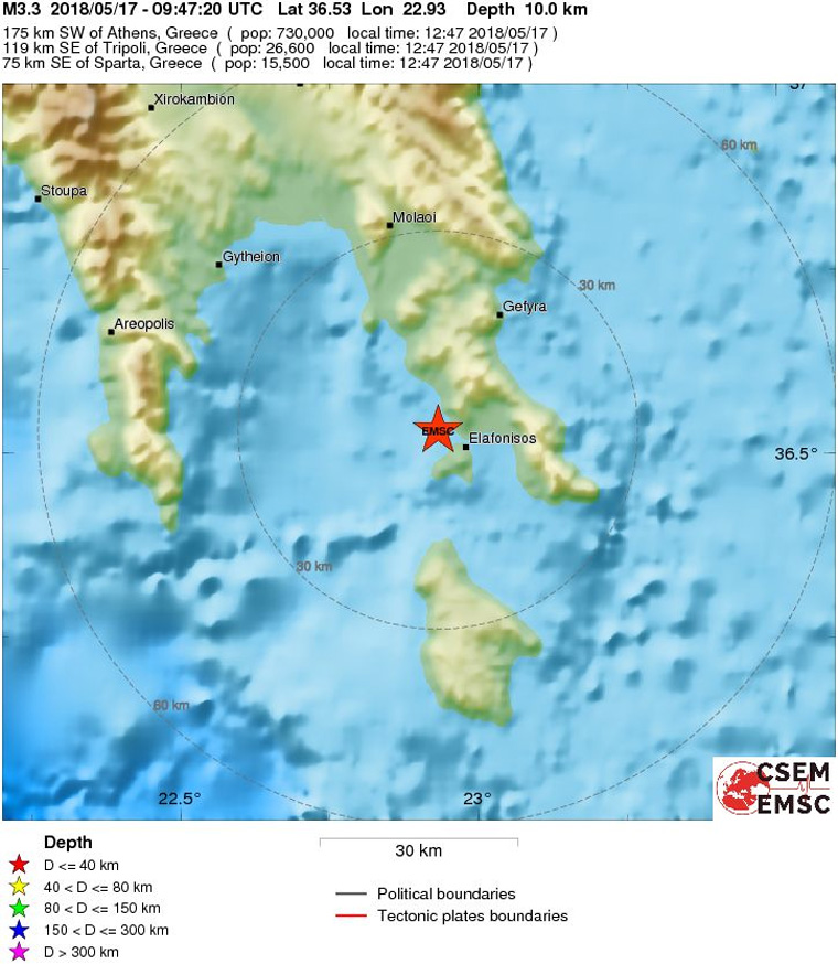 Σεισμική δόνηση μεγέθους 3,2 βαθμών της κλίμακας Ρίχτερ σημειώθηκε στις 12.47 σε θαλάσσια περιοχή νοτιοδυτικά της Γέφυρας στην Πελοπόννησο, σύμφωνα με την προκαταρκτική μελέτη του Γεωδυναμικού Ινστιτούτου του Εθνικού Αστεροσκοπείου Αθηνών.