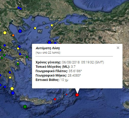 Σεισμός 3,7 βαθμών νοτιοανατολικά της Ρόδου
