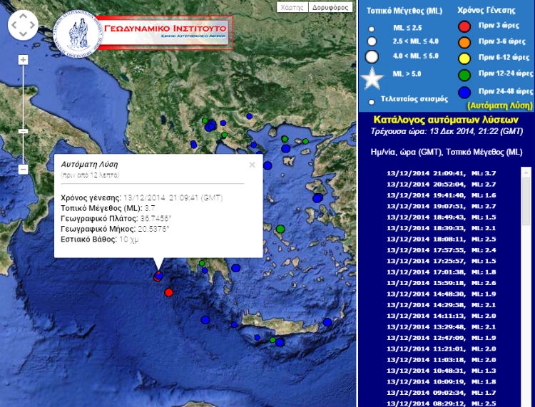 Ασθενής σεισμική δόνηση μεγέθους 3,7 βαθμών της κλίμακας Ρίχτερ σημειώθηκε στις 23.09 το βράδυ του Σαββάτου, στον θαλάσσιο χώρο ανοιχτά της Πύλου.