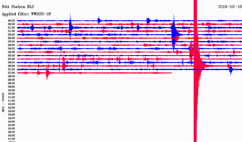 Δείτε πώς κατέγραψε τη δόνηση ο σεισμογράφος του Γεωδυναμικού Ινστιτούτου του Εθνικού Αστεροσκοπείου Αθηνών που είναι εγκατεστημένος στο Ρίολο της Αχαΐας