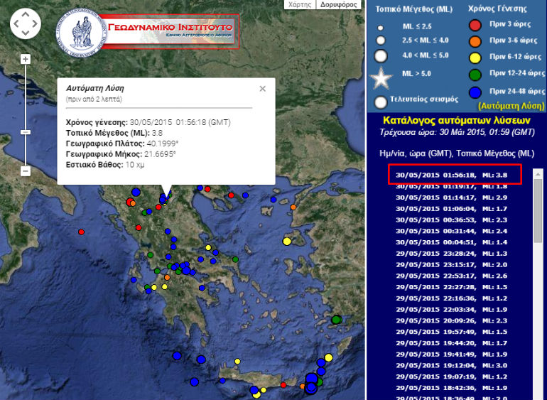 Ασθενής σεισμική δόνηση μεγέθους 3,8 βαθμών της κλίμακας Ρίχτερ σημειώθηκε στις 04.56 τα ξημερώματα του Σαββάτου στην Κοζάνη.
