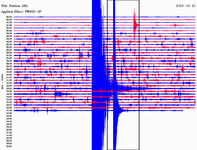 Δείτε πώς κατέγραψε τη δόνηση ο σεισμογράφος του Γεωδυναμικού Ινστιτούτου του Εθνικού Αστεροσκοπείου Αθηνών που είναι εγκατεστημένος στον Αρχάγγελο Ρόδου (πρόκειται για το σεισμό που βρίσκεται στο μαύρο πλαίσιο):