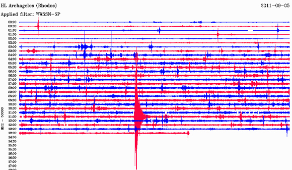 Δείτε πως κατέγραψε τη σεισμική δόνηση ο σεισμογράφος του Γεωδυναμικού Ινστιτούτου του Εθνικού Αστεροσκοπείου Αθηνών που είναι τοποθετημένος στον Αρχάγγελο, Ρόδου.